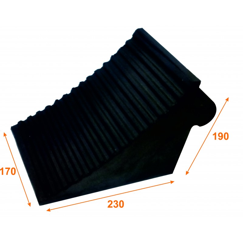 Calzo fabricado con caucho de máxima resistencia, con una dureza de 80º shore, obteniendo una máxima adherencia al suelo y al neumático.